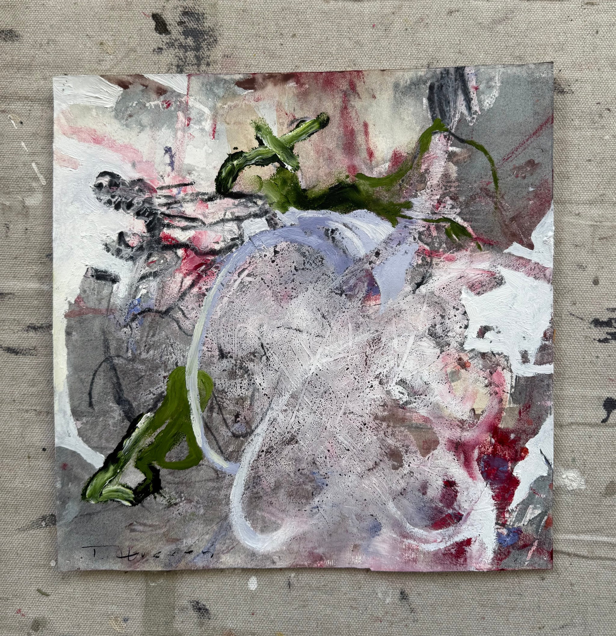 Promises to Scale 10 $750.00 Default Title - $750.00 Quantity This product is currently sold out. Please fill in the form below if you'd like to be notified when it becomes available. Oil, charcoal on paper12 x 12”2025
